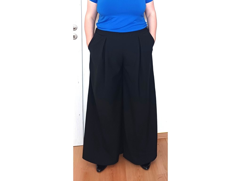 Pas je pružný a pohodlně se natáhne až o 7 cm. Guma se sice zvládne natáhnout i více, ale doporučuji vybírat velikost tak, aby zůstala volnější – právě tehdy kalhoty poskytují ten pravý pocit pohodlí a volnosti při nošení. Máte- li například v pase 98 cm, zvolte raději velikost 48.